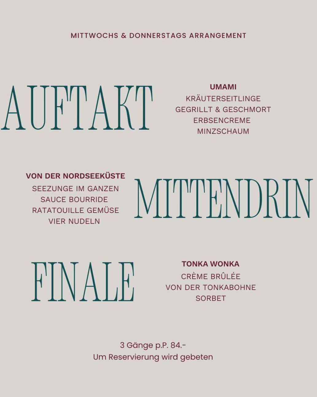 DAS MITTWOCH & DONNERSTAG ARRANGEMENT